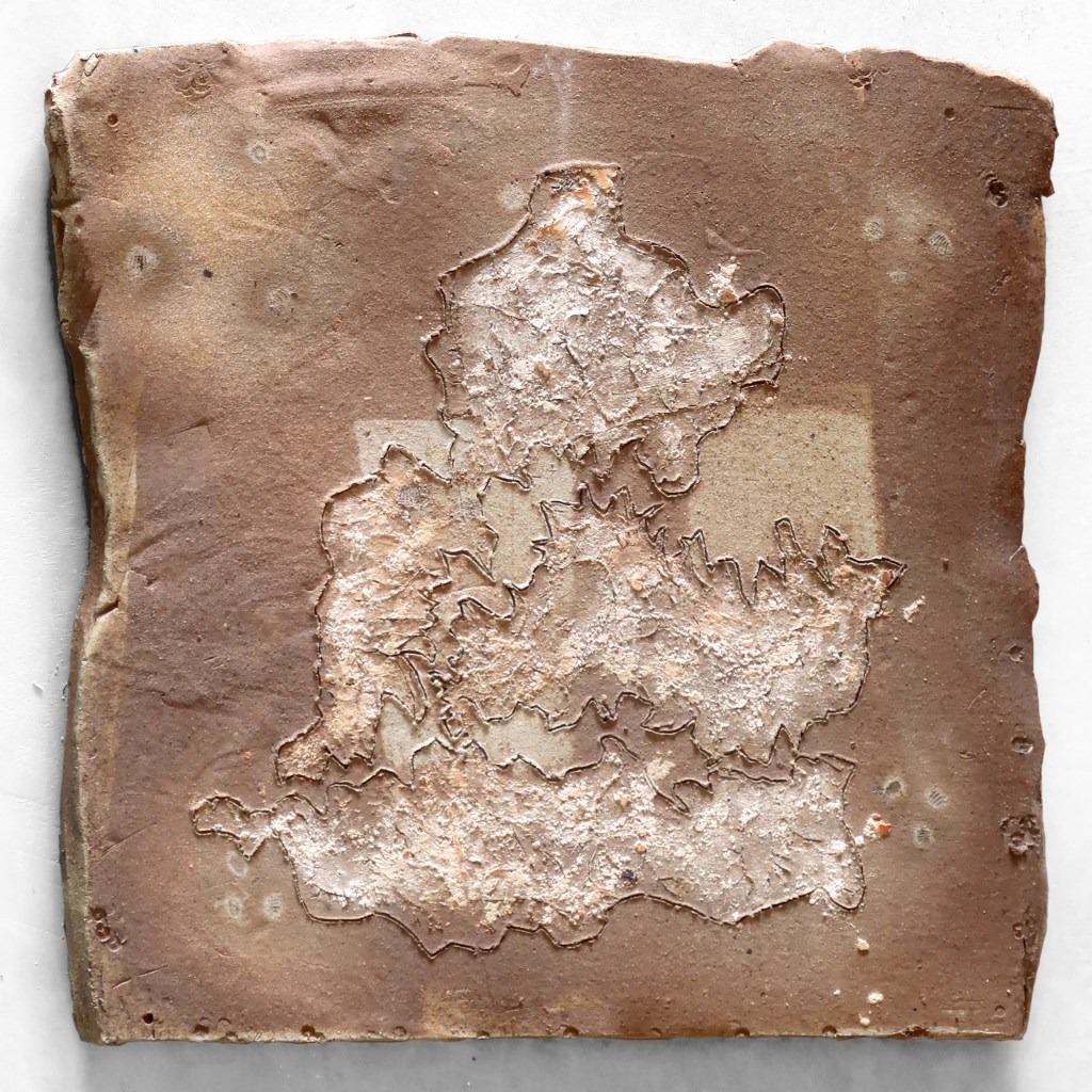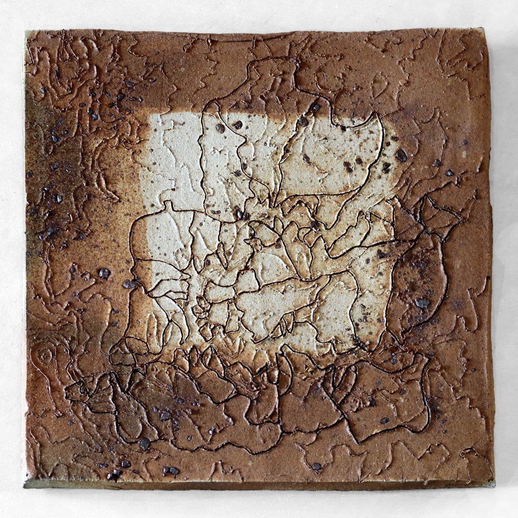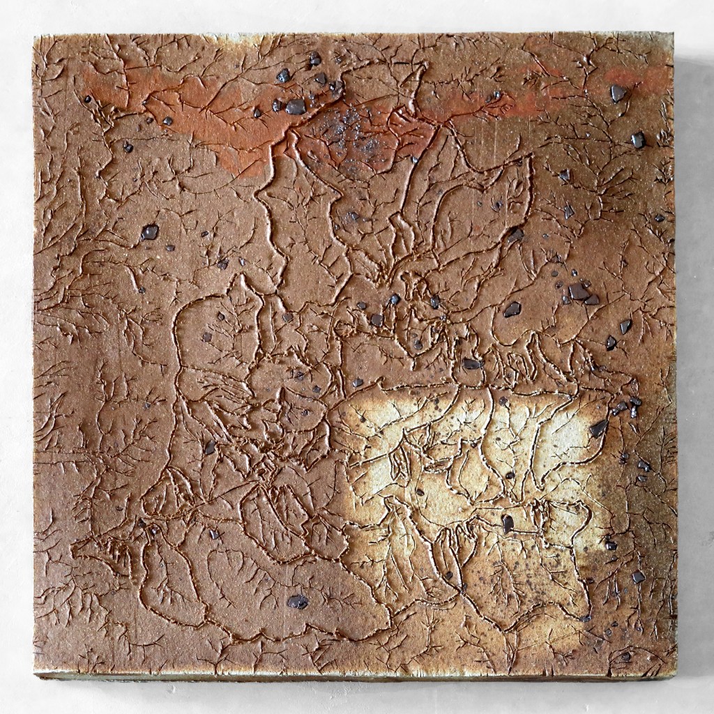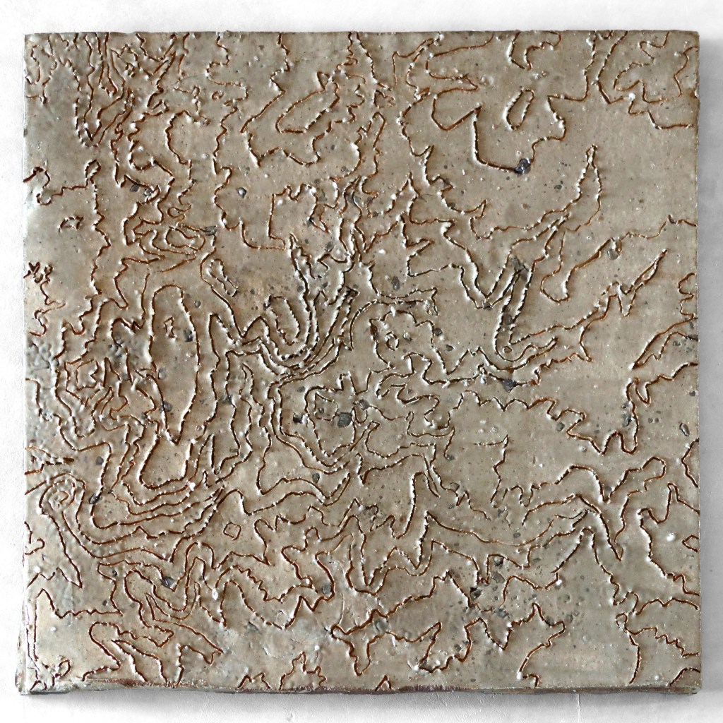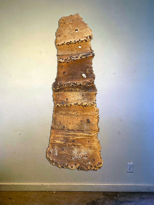 Bill Gilbert inscribes maps on chunks of earth to record various aspects of the topography at Anaya Springs including topo lines, watershed boundaries and flow lines. His Flashflood wall sculptures are a response to the force of water moving across the land during rain storms.