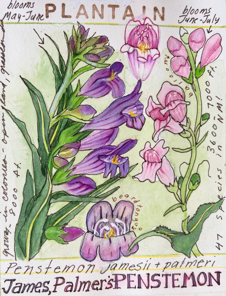 Watercolor drawings by Lynn Grimes present a selection of native wildflowers growing at Anaya Springs.